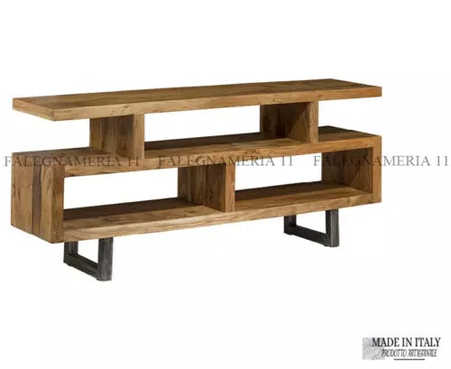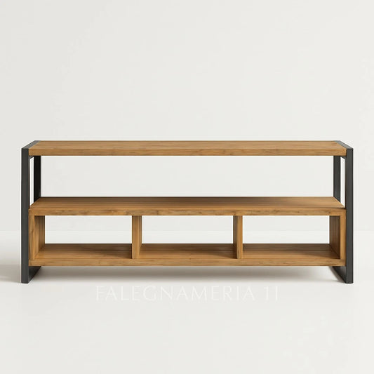 Mobile porta TV in legno massiccio e ferro design industriale artigianale