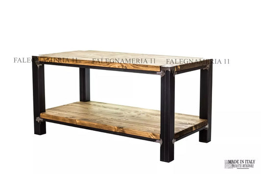 Tavolino Basso da Salotto in Vero Legno e Ferro – Stile Industriale Artigianale