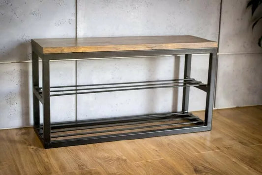 Panca Scarpiera Salvaspazio in Legno Massiccio e Ferro – Stile Industriale