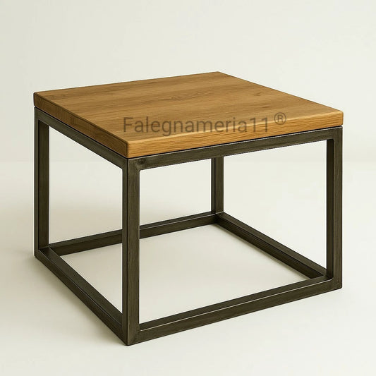 Tavolino da Salotto in Legno Massiccio e Ferro – Design Artigianale 90x45x45 cm
