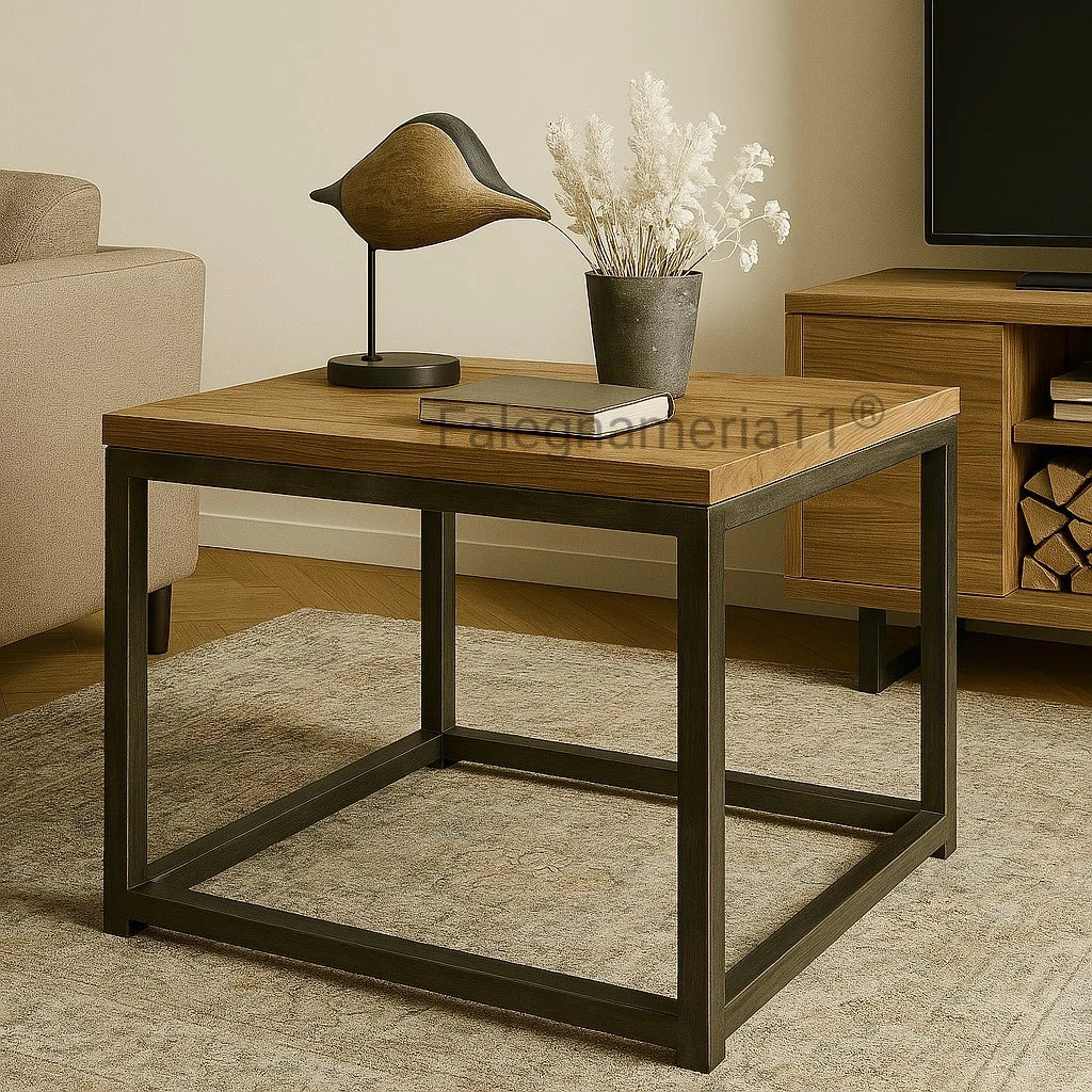 Tavolino Basso da Salotto in Vero Legno e Ferro – Stile Industriale Artigianale